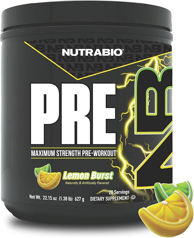 NutraBio PRE Workout Powder - New Formula- Sustained Energy, Mental Focus, Endurance - Beta Alanine, Caffeine, Electrolytes - 20 Servings - Lemon Burst