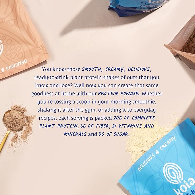 - Protein Your Way: Whether you're vegan, gluten-free, or looking for a clean, healthy protein supplement, Koia shakes and powders are designed to fuel both men and women on their journey to muscle recovery, strength, and overall wellness.