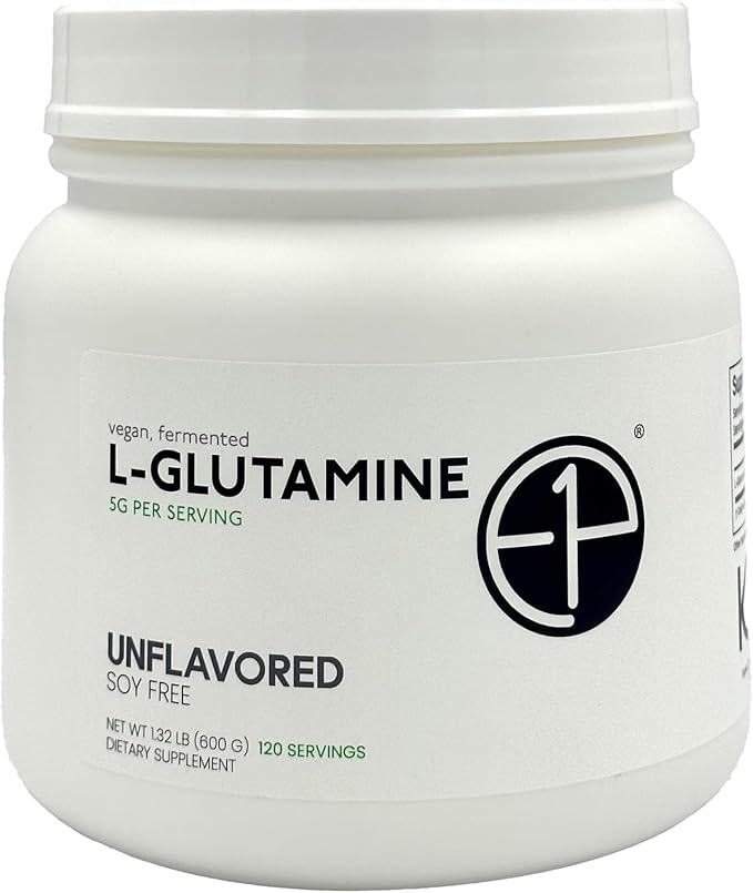 L-Glutamine 600grams (120 Servings) Unflavored, Non-GMO, Vegan Fermented, Third-Party Lab Tested. Made with Halal and Kosher Certified Ingredients.