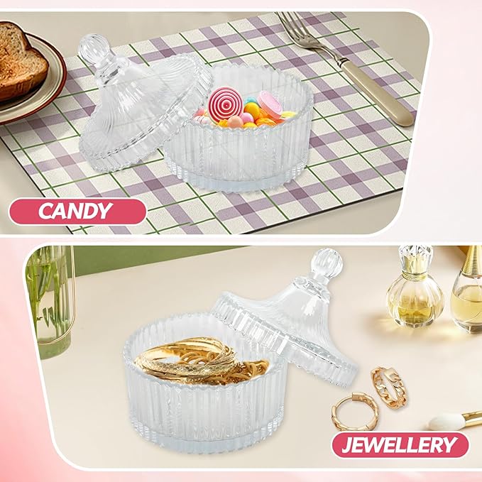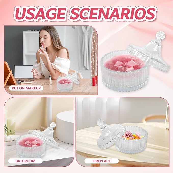 - 【Wide Applications】- Our powder container with puff set is suitable for a variety of occasions, the large puff can not only be used as a decor, but also the packaging design makes it possible to be used in different cosmetics or different occasions to avoid cross-contamination. Transparent containers can also be used to store earrings, jewelry, hairpins, beauty tools and candies. Whether placed in the bathroom, dressing table or kitchen, it will bring you an exquisite visual experience, elegant and beautiful