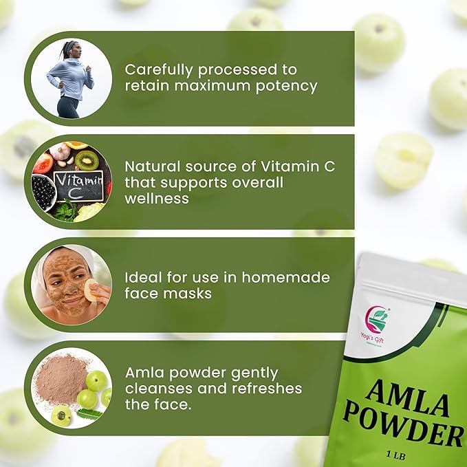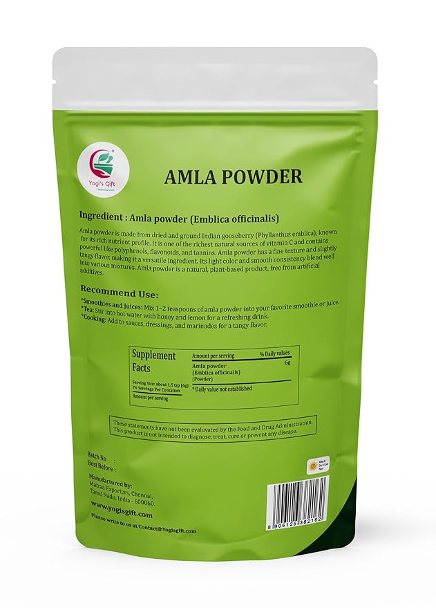 Amla Powder 1 LB, Finely Ground Raw Powder for Smoothies & Recipes, 100% Pure Indian Gooseberry powder, Resealable Bag for Freshness - By Yogi’s Gift®