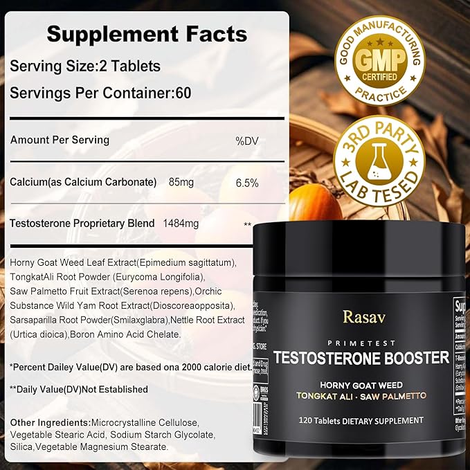 - UNLEASH YOUR POTENTIAL: Rasav Testosterone Booster for men, can naturally build muscle, energy, strength, endurance and performance, regain confidence and improve manhood. Designed for fitness athletes and manual laborers, unleash your potential, get lean muscle and explosive strength.