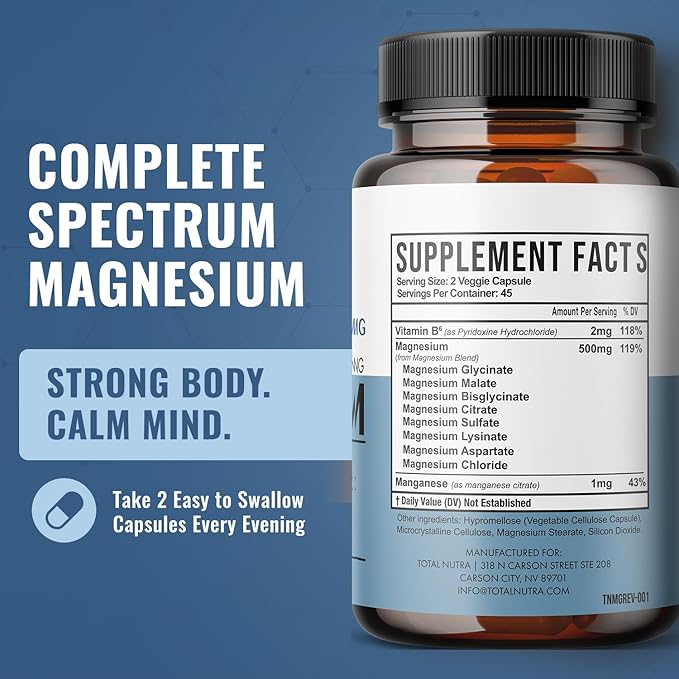 - COMPREHENSIVE 10-IN-1 FORMULA: Our advanced magnesium capsules feature 10 highly bioavailable forms of magnesium, including Magnesium Glycinate and Citrate, Magnesium Aspartate, Magnesium Orotate, Malate & more for the best magnesium supplements to support relaxation, cardiovascular function & overall wellness. Provides 100% Recommended Daily Intake Value.