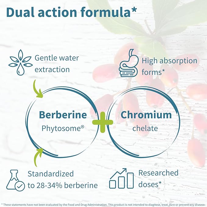- DUAL ACTION, EFFECTIVE DOSES - to maximize the beneficial effects, we combine an effective daily dose of 550 mg berberine phytosome and 200 mcg chromium picolinate chelate*