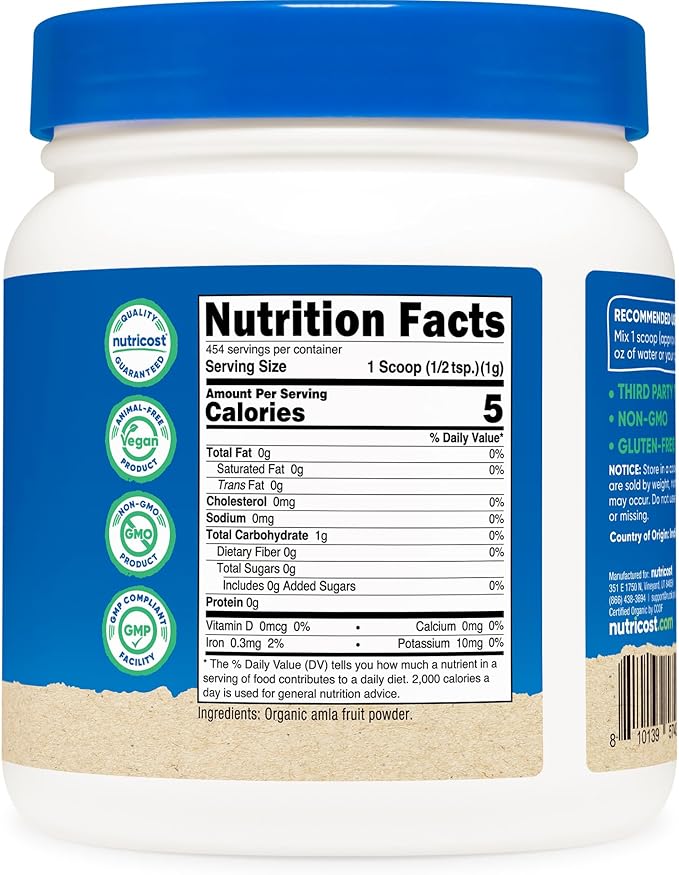 - Nutricost Organic Amla Powder is unflavored, making it easy to add to your favorite drinks and recipes.