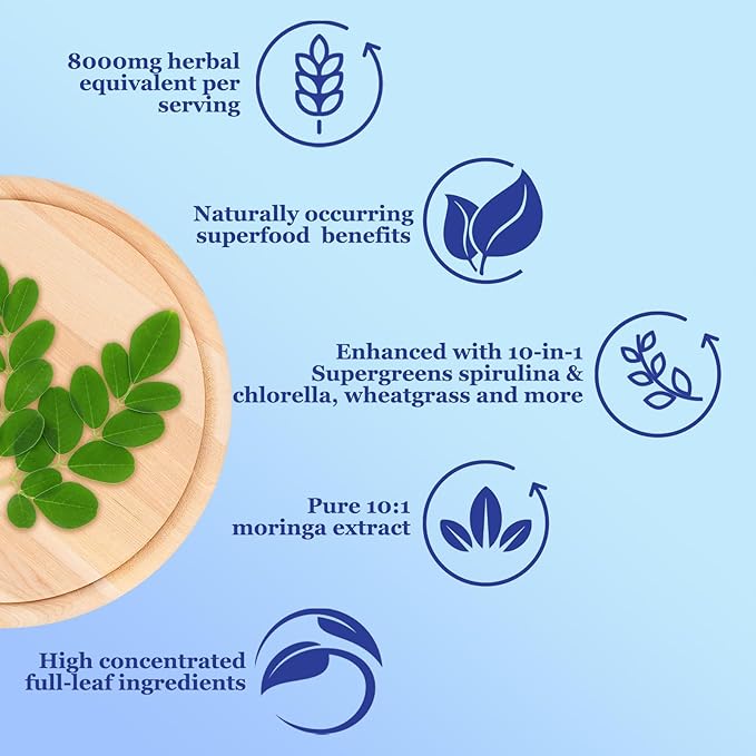 - Support Powerful Antioxidant & Overall health*: 10-in-1 organic raw moringa oleifera leaf & green antioxidant superfood blends are rich in vitamins, minerals, and essential amino acids to comprehensively support your immune system, energy and overall health. Powerhouse antioxidants like vitamin C and quercetin help skin health*, support brain focus & memory health* and deliver full-spectrum daily health benefits