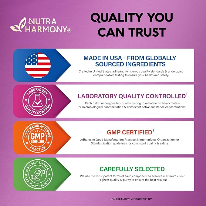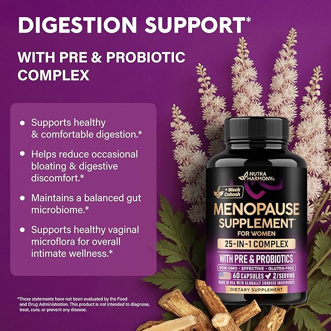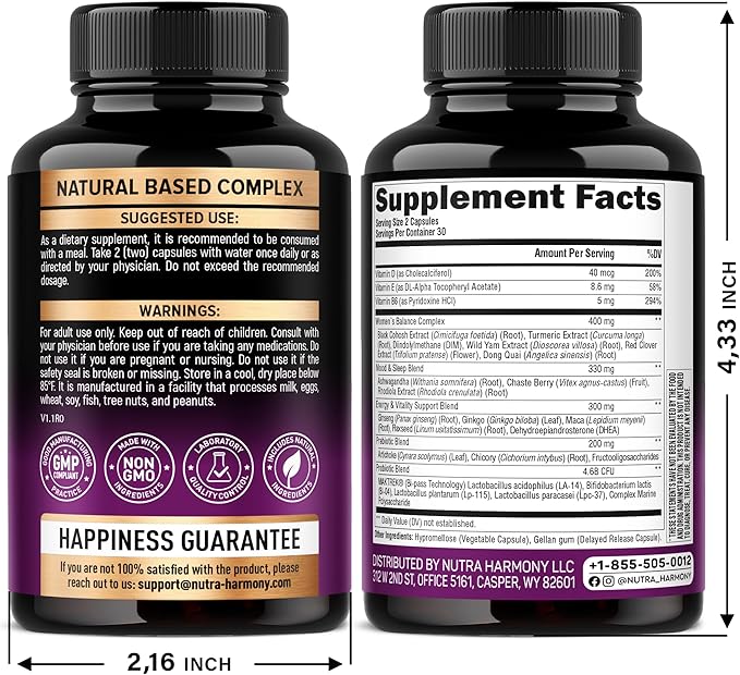 - Wellness You Can Rely On — your health is personal, and so is our commitment. At NUTRAHARMONY, we go above and beyond to deliver premium supplements with a purpose. Our Menopause capsules are thoughtfully formulated, thoroughly tested, and backed by responsive, caring customer service. Because your comfort, confidence, and peace of mind deserve nothing less than excellence.