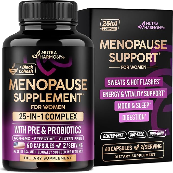 - Menopause Supplement 25-in-1 — for every stage of change! Specially designed for women navigating the natural transition of menopause, this powerful all-in-one formula delivers daily support for the most common changes. Whether you're dealing with hot flashes, night sweats, low energy, mood swings, sleep disturbances, or brain fog, this gentle yet effective blend helps you feel balanced, empowered, and in tune with your body. Stay strong, sharp, and serene through every phase of this important journey.