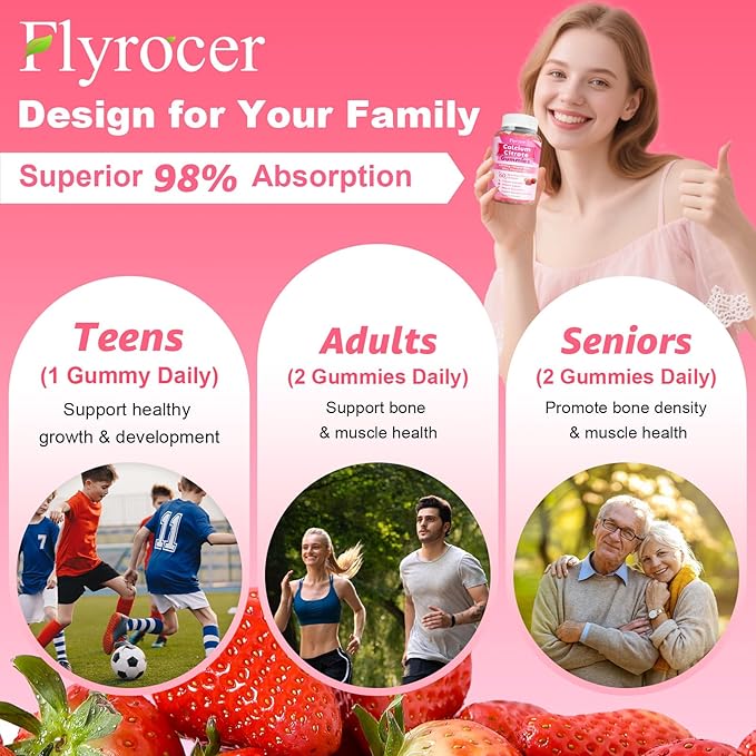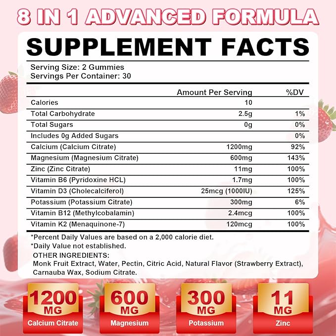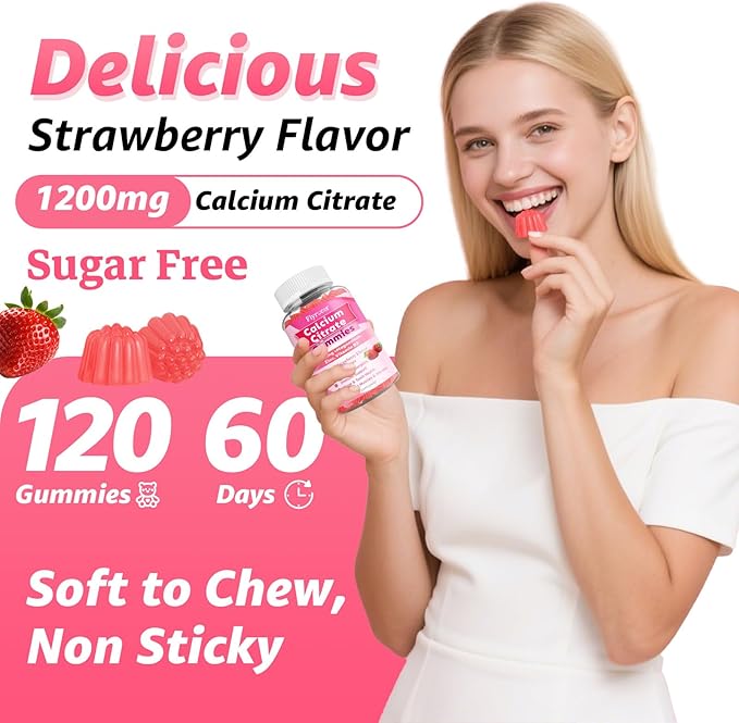 - Plant-derived & Sugar-Free - Vegan and 100% natural strawberry flavor, our Calcium Citrate are crafted with care to meet the highest standards. Made with non-GMO, gluten-free and sugar-free ingredients, they’re sweetened with plant-based extracts for a healthier alternative.
