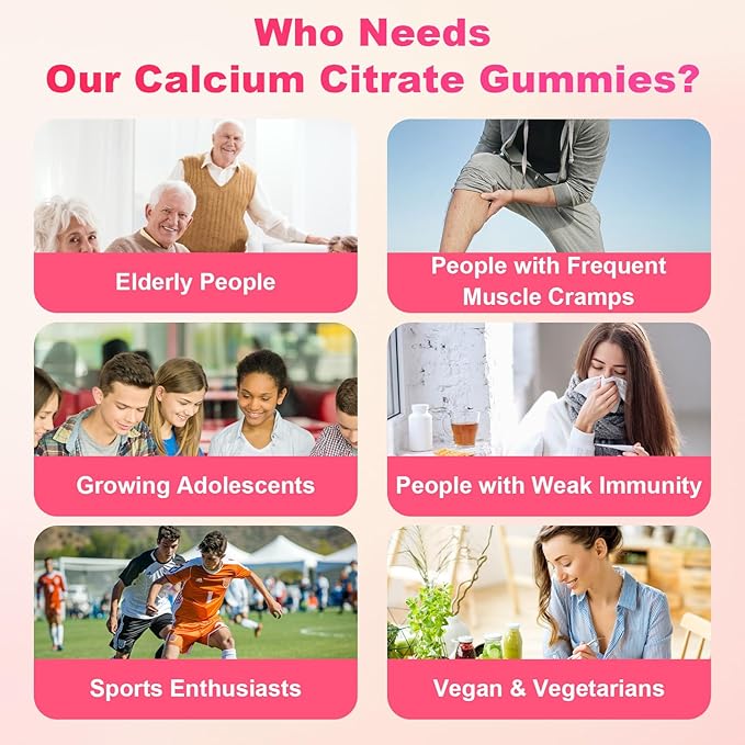 - Enhance Nerve System & immune Function - Calcium Citrate Gummies will nourish your nervous system with essential B vitamins ! Vitamin B6 and B12 optimize neurotransmitter production and nerve signal transmission, while Magnesium calms overstimulated neurons. Plus, adequate calcium intake will enhance immune function,promoting your overall health.