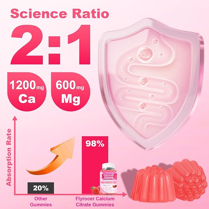 - Boost Bone Density & Skeletal Strength - Fortify your bones for lifelong vitality! Vitamin D3 enhances calcium absorption, Vitamin K2 directs minerals to bones, and Calcium Citrate provides superior bioavailability. Our Calcium 1200 mg with Vitamin D3 gummies will increase bone mineral density, reduce fr♥cture and support j♥int flexibility.