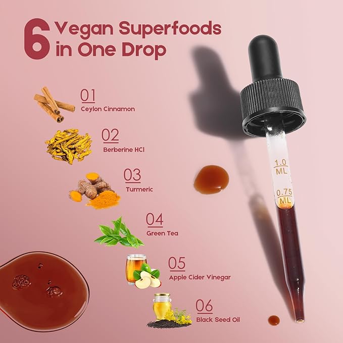 - 100% Vegan Cinnamon Bitter Berberine Liquid Drops:Formulated with clean, plant-based ingredients, our supplement is free from artificial colors and unnecessary additives. It contains no alcohol, sugar, gluten, soy, dairy, wheat, yeast, or corn—ensuring a worry-free experience suitable for a wide range of dietary preferences.Start your day with the refreshing goodness of Black Seed Oil drops, a delightful way to nourish your body and mind.
