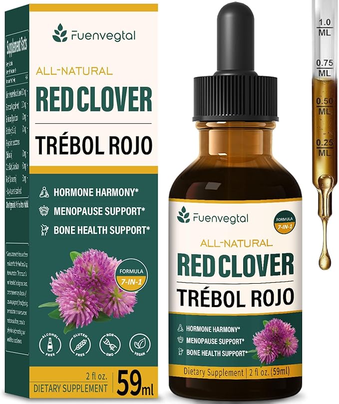 Red Clover Herb Drops for Women Menopause Support, Herbal Supplement Tincture w/Dong Quail, Wild Yam Support Hot Flashes Relief & Bone Health. 2oz