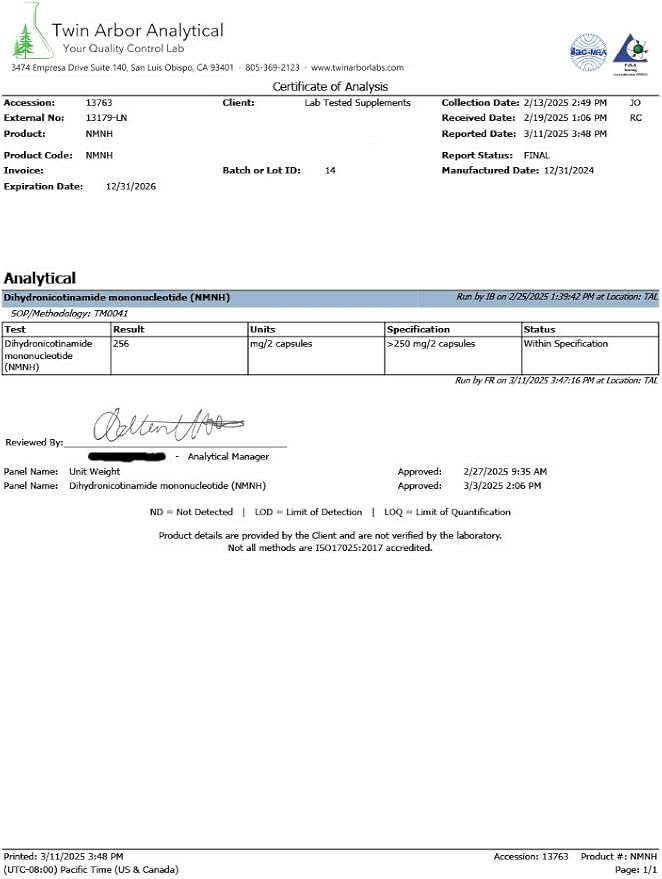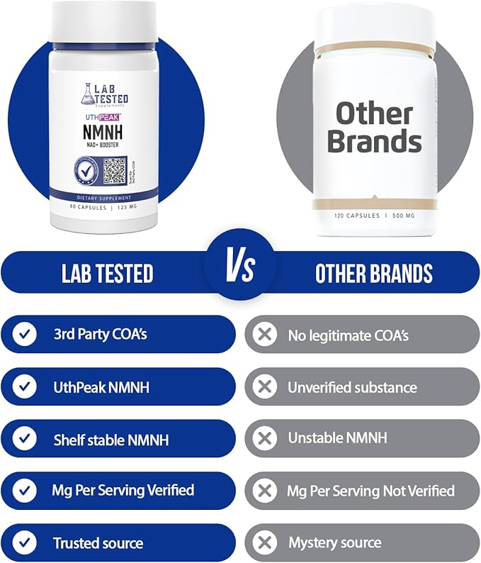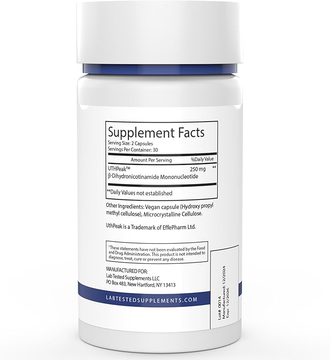 NMNH (UthPeak) - NAD Booster - Dihydronicotinamide Mononucleotide - 3rd Party COA Provided - 250 mg per Serving - 60 125mg Capsules