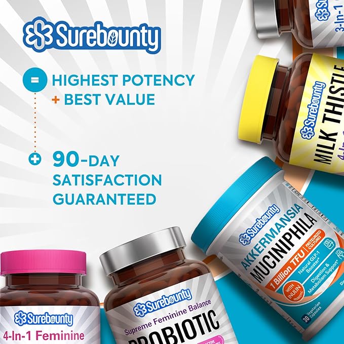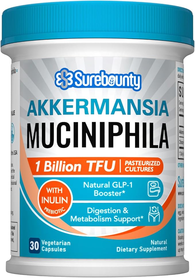 - Natural GLP-1 Booster*: Surebounty’s 1 vegan capsule packs cutting-edge probiotic & prebiotic – 1 billion of pasteurized akkermansia muciniphila and 200 mg of chicory inulin - specially designed to support the body’s natural GLP-1, metabolism, and digestion.* Take One vegan capsule daily, Feel Light, Eased & Energetic with Surebounty Akkermansia Muciniphila!*