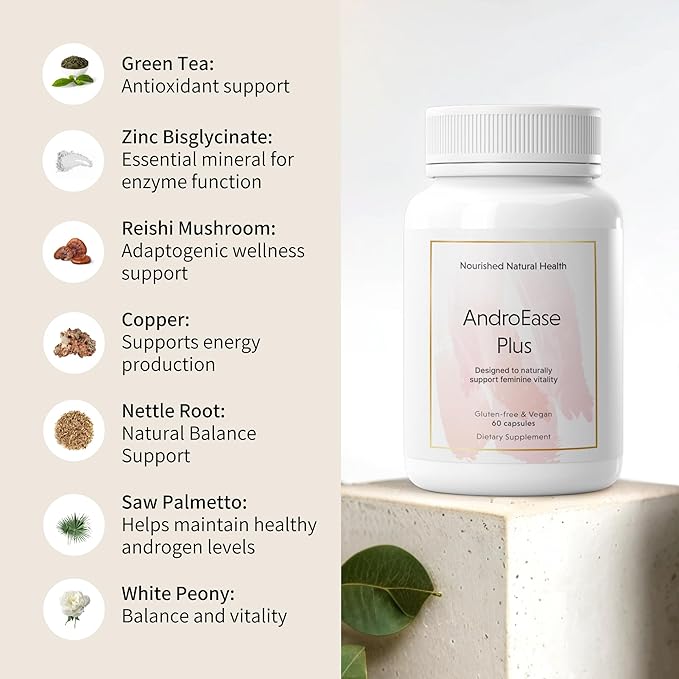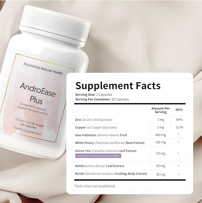 Nourished AndroEase Plus - Natural Balance Supplement for Women - Vegan Formula with Zinc & Saw Palmetto - 240 Capsules for Daily Wellness & Vitality - Made in USA