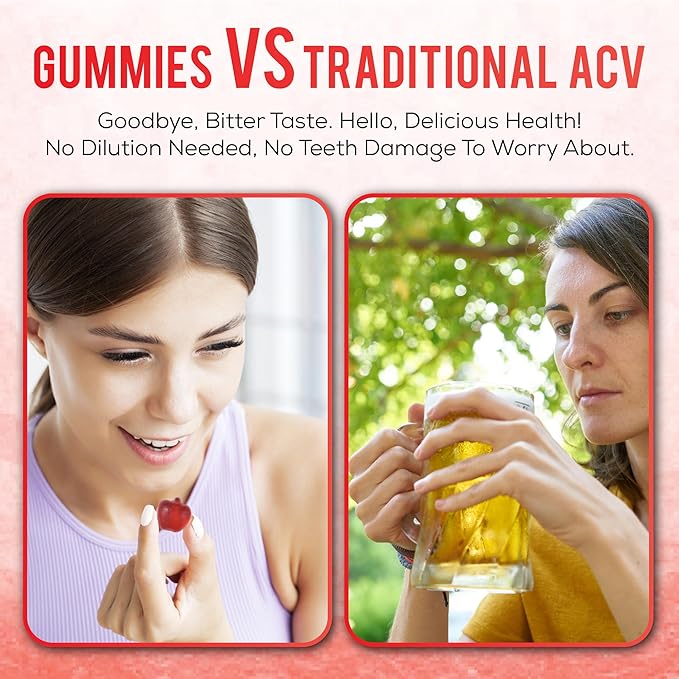 - Tasty Apple Flavor - Say goodbye to harsh liquid vinegar taste and hello to delicious Snappy Apple gummies. Easy to chew and enjoy as part of your daily routine. No pills to swallow and no unpleasant aftertaste. Makes taking your daily ACV simple and enjoyable.