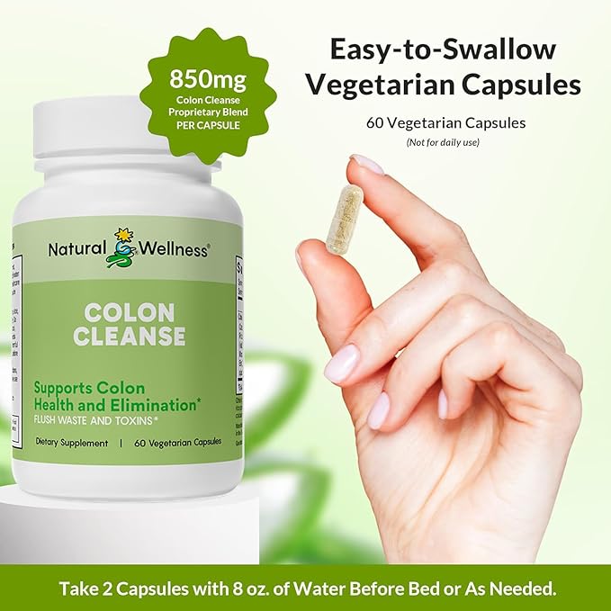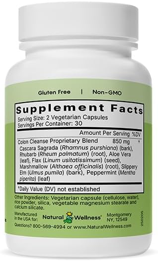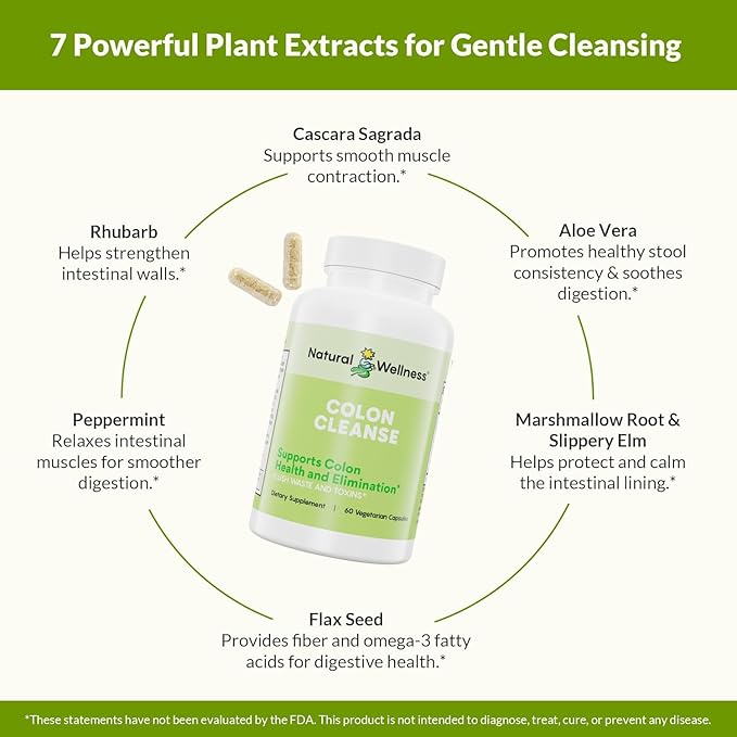 Natural Wellness Colon Cleanse – Gentle Detox with 7 Plant-Based Herbs – Supports Digestion & Regularity – Gluten Free, Vegetarian Capsules – 60 Count