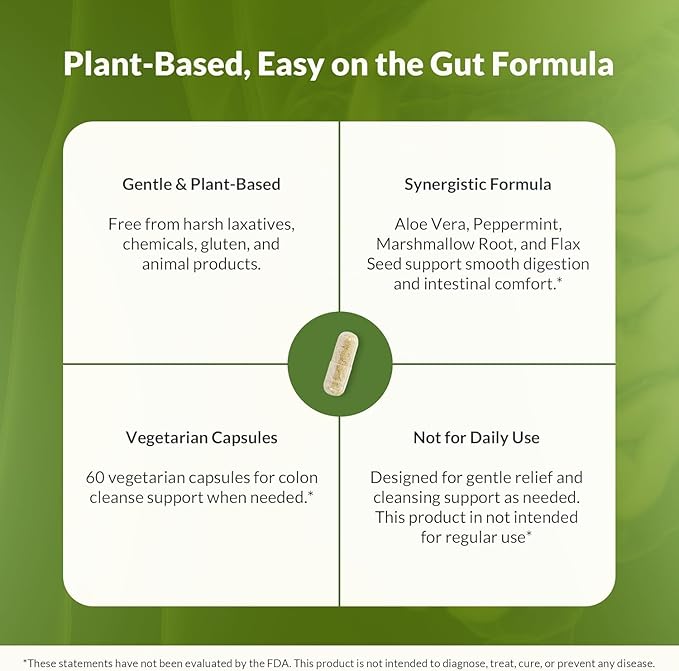 - PROMOTES GENTLE, NATURAL DETOX: Support your body’s natural detox process with a proprietary blend of 7 plant-based herbs, including Cascara Sagrada and Aloe Vera, known to flush toxins and waste without harsh side effects.