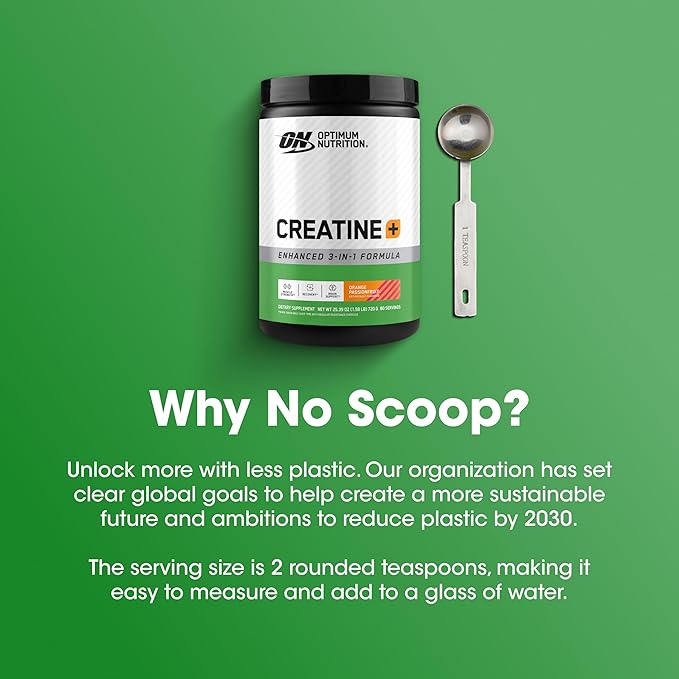 Optimum Nutrition Creatine Monohydrate Plus Powder, Orange Passionfruit Flavored Creatine Performance Blend With Electrolytes for Hydration, Added Vitamins, 80 Servings, 720 Grams (Packaging May Vary)
