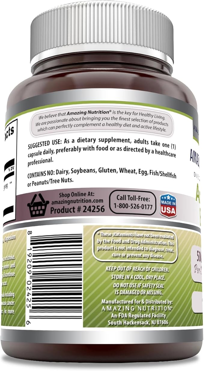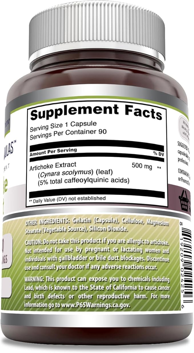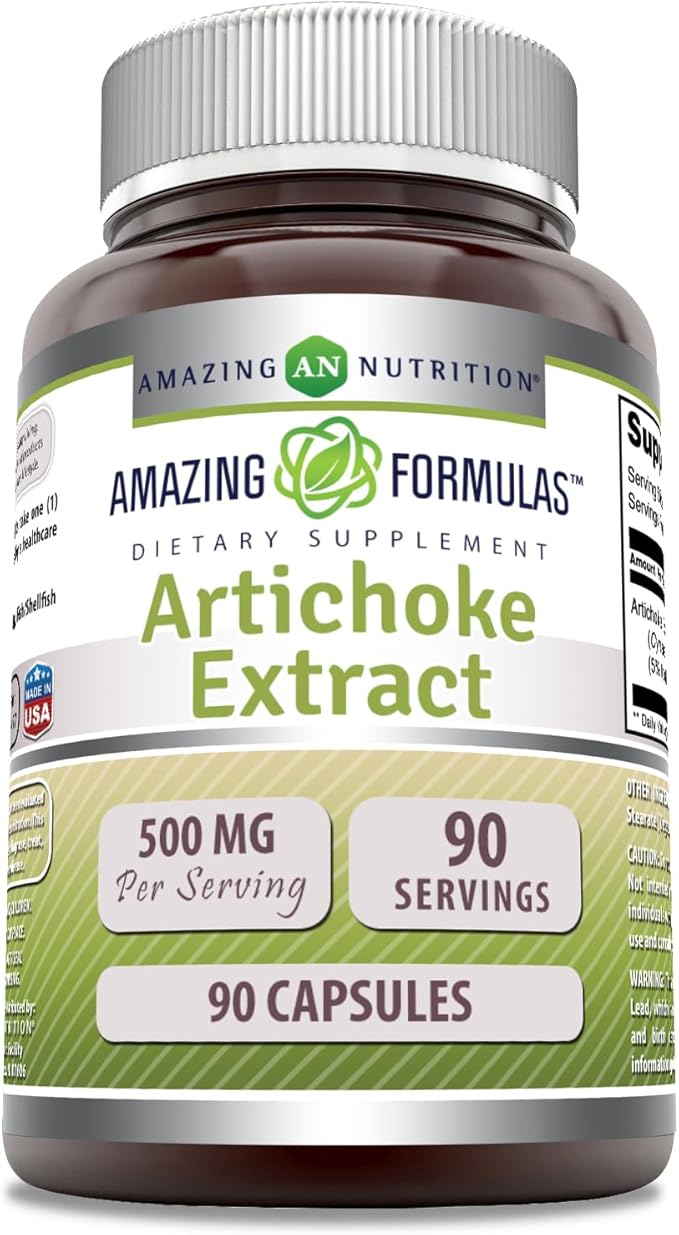 Amazing Formulas Artichoke Extract Supplement | Cynara Scolymus Leaf Capsules| 500 Mg | Capsules | Non-GMO | Gluten Free | Made in USA (1 Pack, 90 Count)