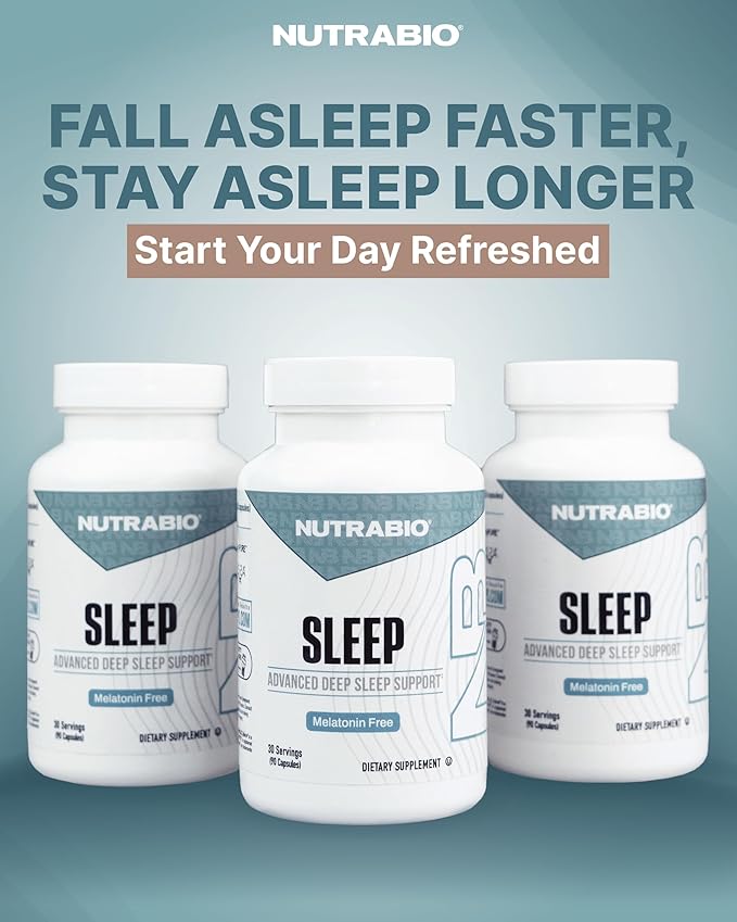 NutraBio Sleep - Advanced Deep Sleep Supplement - Restorative Natural Sleep Aid, Reduces Restlessness - Melatonin Free Sleep Aid - 30 Servings- 90 Capsules