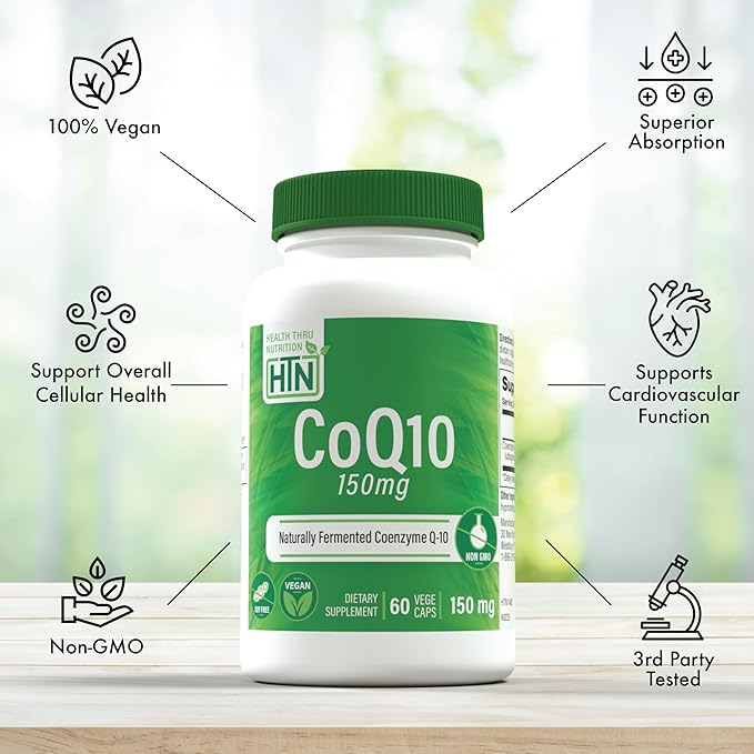 Health Thru Nutrition CoQ-10 150mg - 60 Capsules | Ubiquinone Coenzyme Q10 | Supports Cellular Energy & Antioxidant Protection | Non-GMO, Soy-Free, Vegan, Gluten-Free