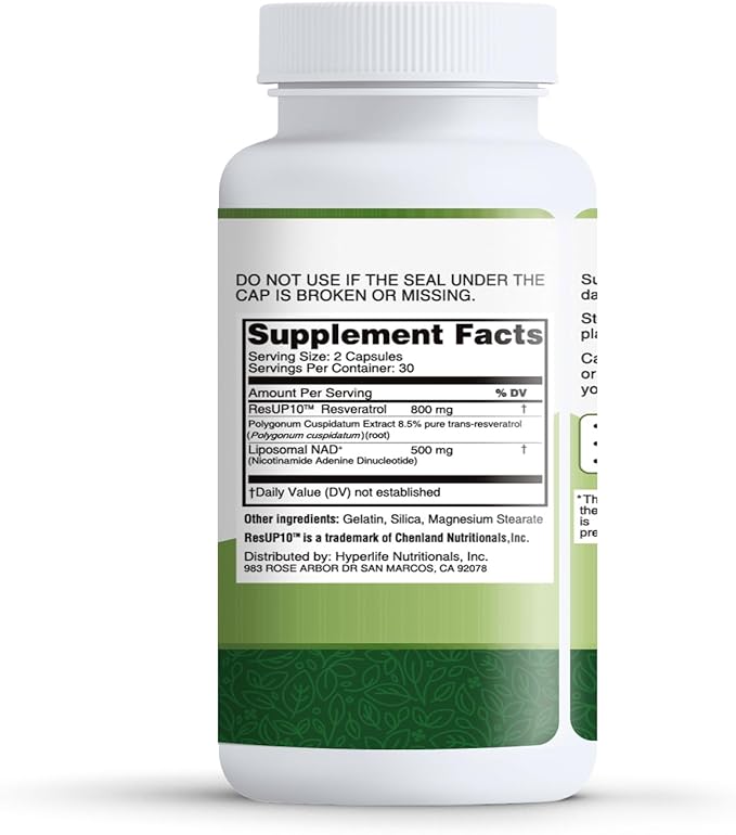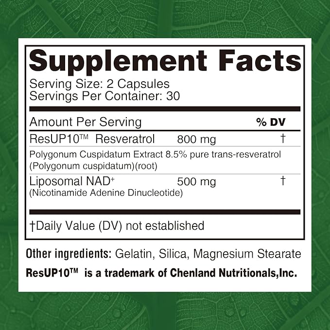 500mg Liposomal NAD+ Supplement, 800mg ResUP10 Resveratrol Complex, Support Aging Health & Cellular Energy, Cardiovascular Supplements,Antioxidant Formula for Men & Women, 30 Servings