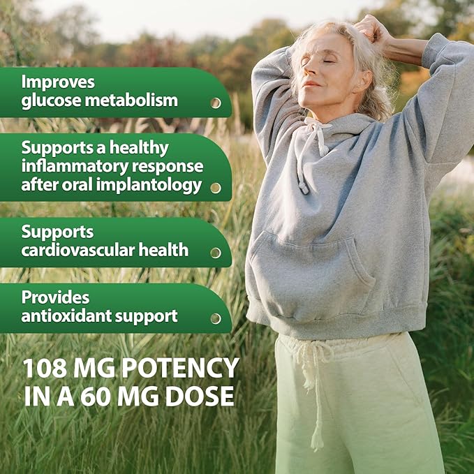 - Patented ResUP10 Resveratrol Complex: 800mg of clinically inspired Resveratrol extracted from Polygonum Cuspidatum root (8.5% pure trans-resveratrol), delivering 108mg potency per 60mg dose to support glucose metabolism, and support healthy inflammatory response