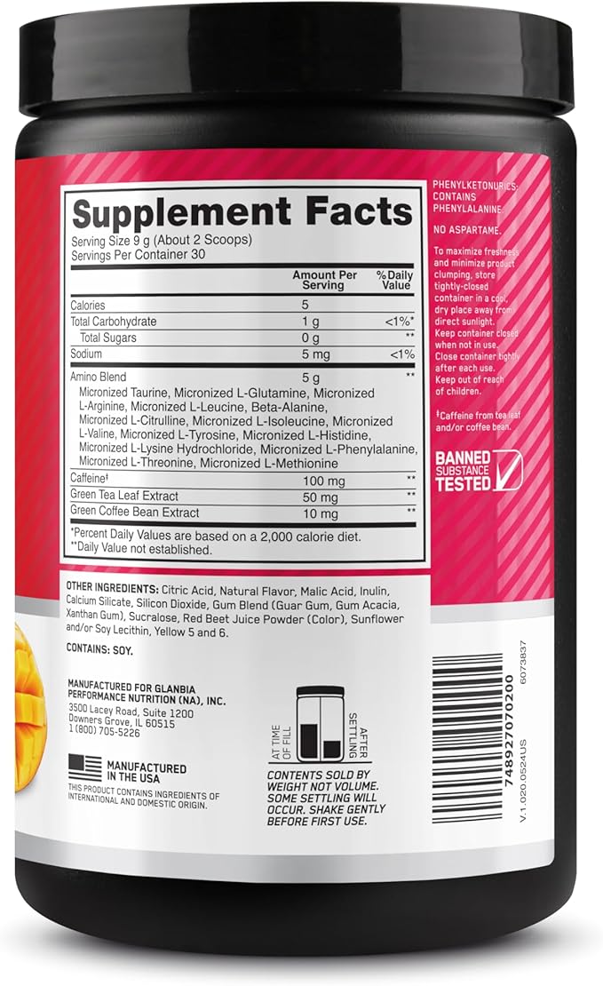 Optimum Nutrition New Flavor Amino Energy - Pre Workout with Green Tea, BCAA, Amino Acids, Keto Friendly, Green Coffee Extract, Energy Powder - Peach Mango Tango, 30 Servings (Packaging May Vary)