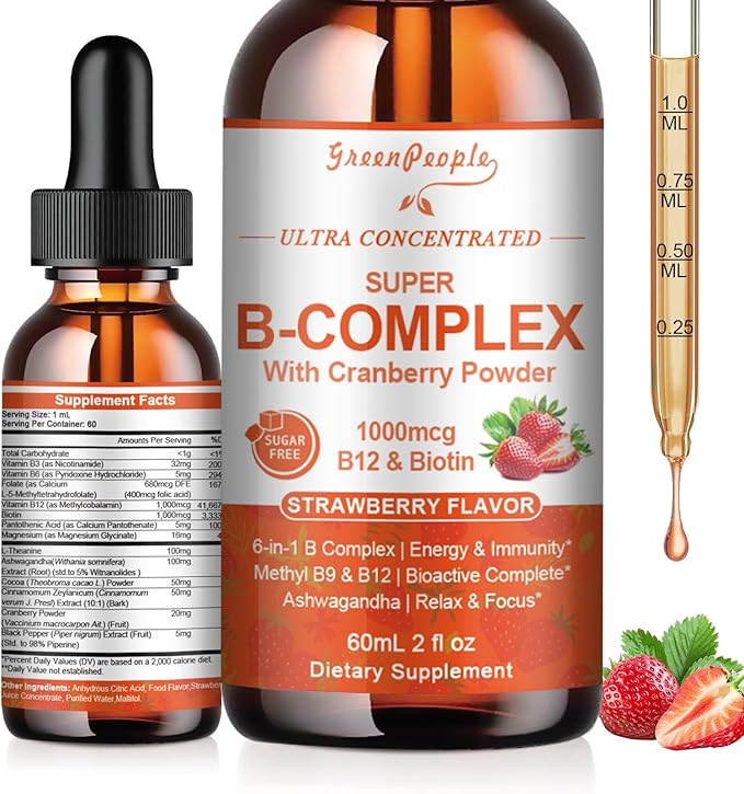 - Long Supply & Easy Use: 60 servings—2 months of wellness in one bottle. Mini liquid dose is easy to swallow, with sublingual delivery for rapid absorption. Delicious natural strawberry flavor makes it enjoyable to take every day. Perfect for women, teens, and men—this B vitamins complex is an ideal choice for the whole family’s daily wellness routine