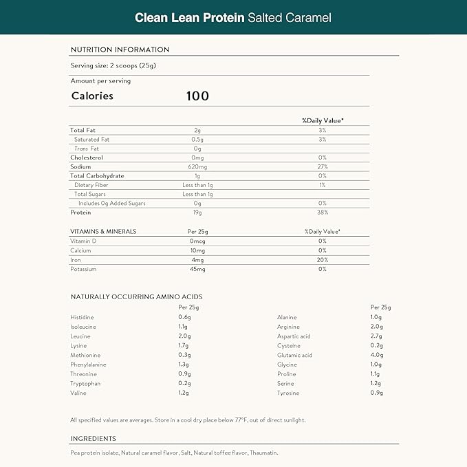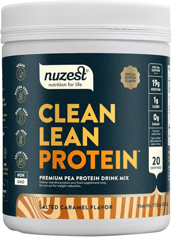 Nuzest - Pea Protein Powder - Clean Lean Protein, Premium Vegan Plant Based Protein Powder, Dairy Free, Gluten Free, GMO Free, Protein Shake, Salted Caramel, 20 Servings, 1.1 lb