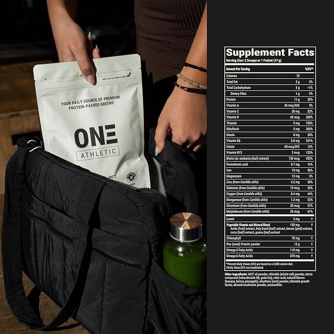 ON3 Athletic Protein Greens Supplement with chlorella, eleuthero and MCT Powder (30 Servings, Herbal)
