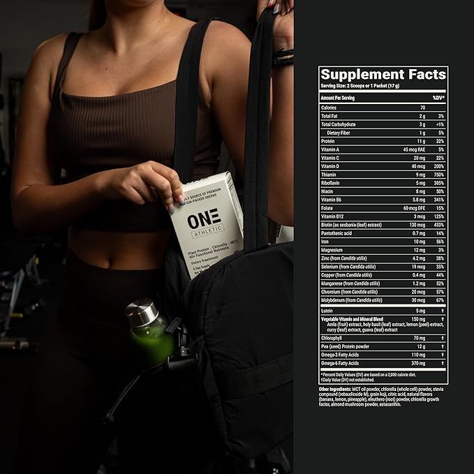 ON3 Athletic Protein Greens Supplement with chlorella, eleuthero and MCT Powder (5 Servings, Herbal)