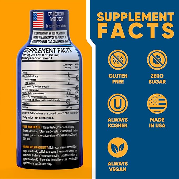 - High-Potency B12 & Natural Caffeine – Packed with 14,000% DV of B12, plus B6, Taurine, and 260mg of plant-based caffeine for energy, focus, and alertness.