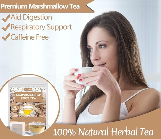 50 Premium Marshmallow Root Tea Bag,100% Natural Pure Althaea Officinalis,No Additives & Caffeine Free, Caffeine-free - Respiratory Support & Promote Digestion.