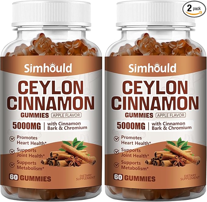 - [Powerful Chrome and Cinnamon Peel Combination]:Cinnamon and chromium work together to provide endless benefits that help you with better metabolism, joint support, heart and brain health.Simhöuld cinnamon gummies provide all the necessary nutritional support you need!