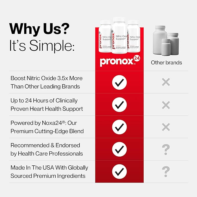 - MADE IN THE USA, VEGAN & NON-GMO — PRONOX 24 Nitric Oxide supplement is made without gluten, dairy, or soy for clean, effective support