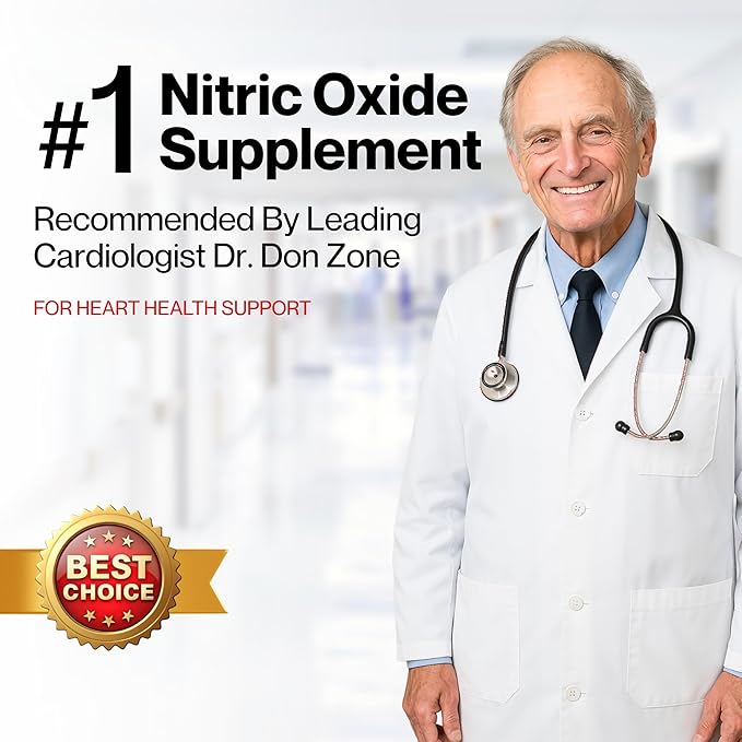 Nitric Oxide Booster Supplement with Magnesium, Zinc, Vitamin B12, Vitamin C & Vitamin D3 | 24-Hour Circulation Support, Energy Boost, Blood Flow & Heart Health | Vegan, Non-GMO (60 Count)