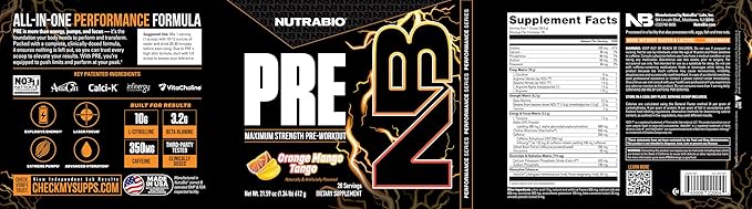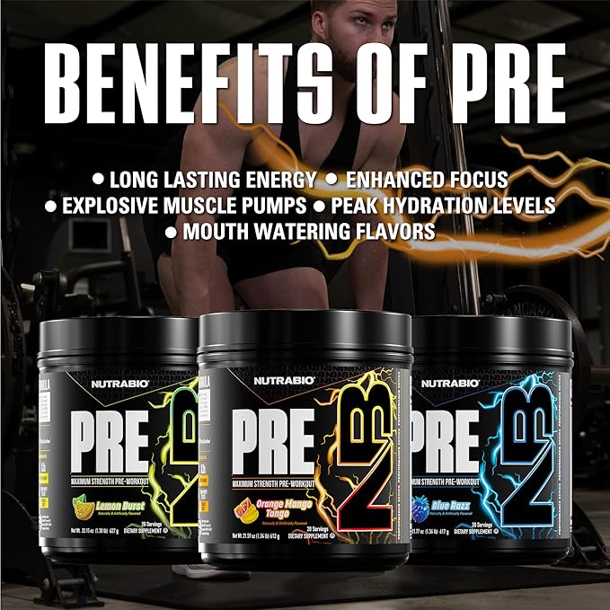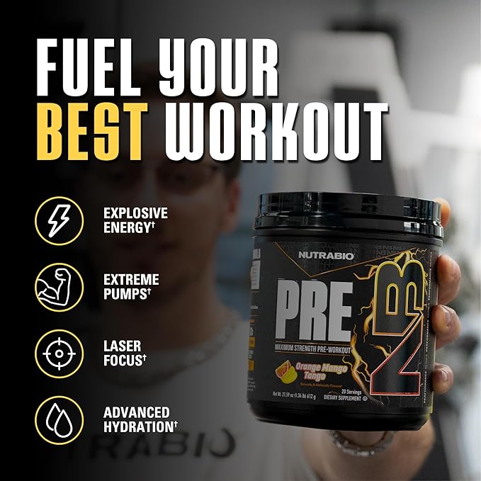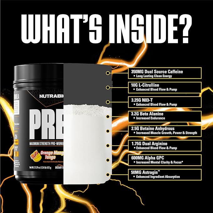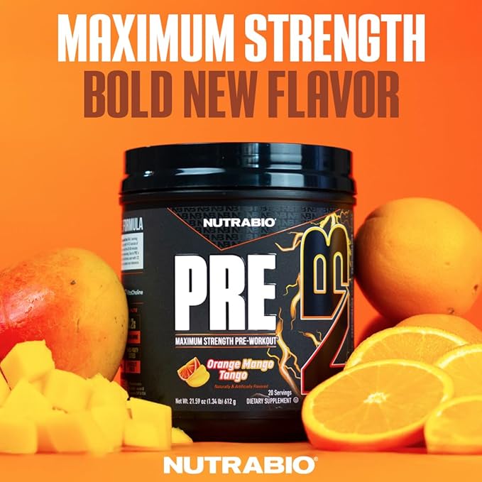 NutraBio PRE Workout Powder - New Formula- Sustained Energy, Mental Focus, Endurance - Beta Alanine, Caffeine, Electrolytes - 20 Servings - Orange Mango Tango