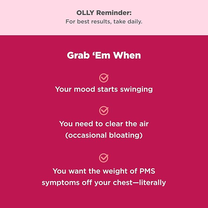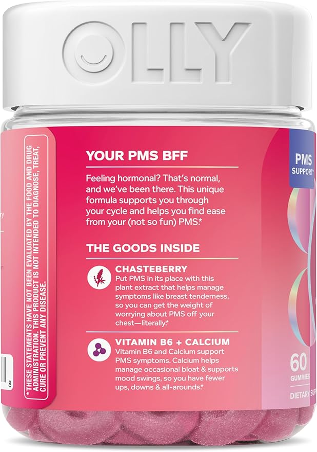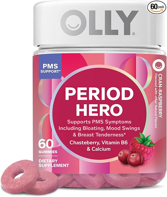 - OLLY PERIOD HERO GUMMIES: Feeling hormonal? That’s normal, and we've been there. This unique formula of Chasteberry, Vitamin B6 & Calcium supports you through your cycle and helps you find ease from your (not so fun) PMS*
