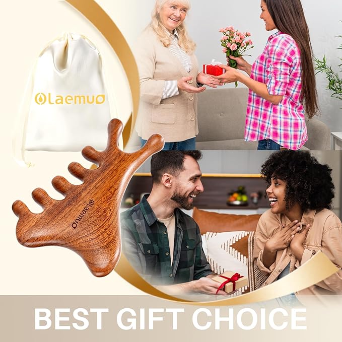 4 in 1 Gua Sha Tool for Face,Scalp Massager with Gift Box,Massage Comb for Head,Face,Eye,Neck & Body Meridian Therapy Tool for Relaxation,Natural Sandalwood
