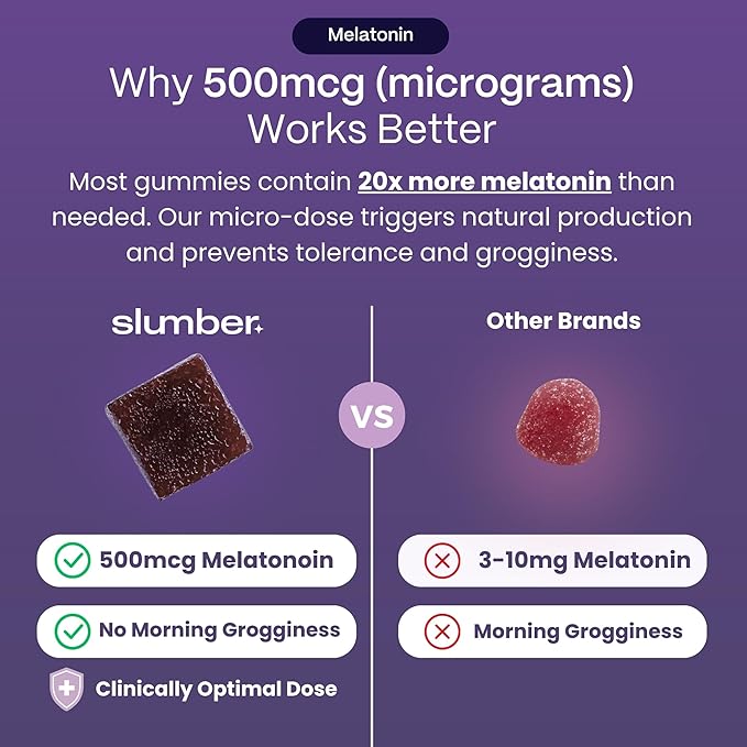 - MELATONIN FOR A RESTFUL NIGHT: Experience a peaceful transition to sleep with just the right amount of melatonin—500 mcg—which can help initiate sleep naturally without disrupting your body’s natural rhythms. Our formula encourages sleep onset, so you can fall asleep quickly and stay asleep longer for a more restful night without the risk of grogginess in the morning.