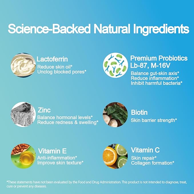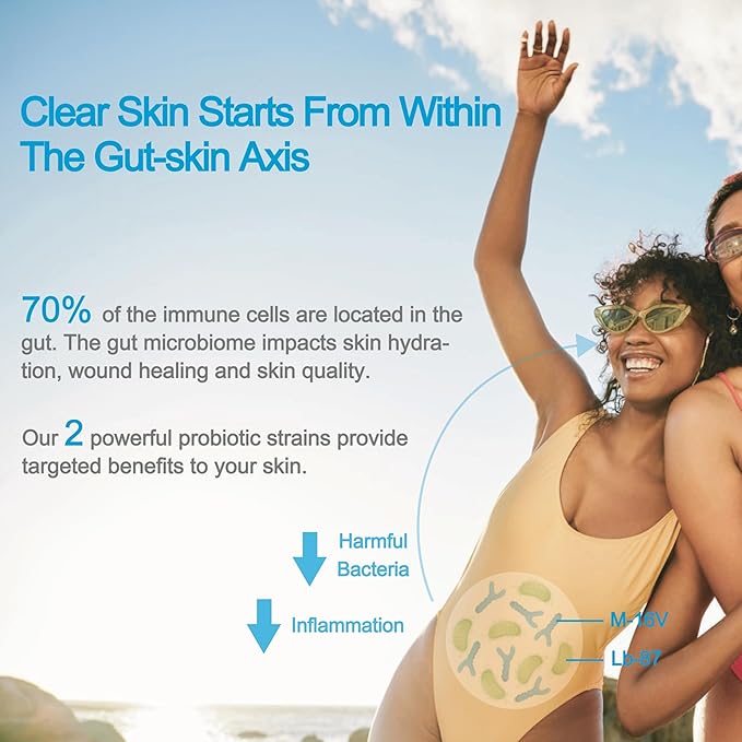 - 2 BILLION CFU PROBIOTICS: GUT-SKIN-IMMUNITY TRIO - Features 2 clinically validated Lactobacillus & Bifidobacterium strains Lb-87 and M-16V (probiotics for women and men) to rebalance your gut microbiome—proven critical for clear skin—while strengthening immune defenses. A healthy gut is the root cause for healthier, happier skin!