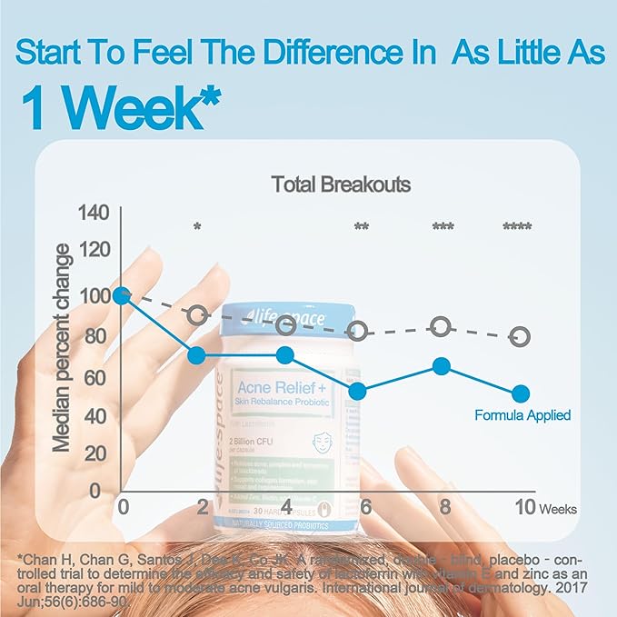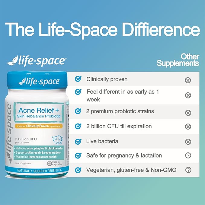 Life-Space Acne Relief + Skin Rebalance Probiotic, 6-in-1 Scientific Formula & 2 Billion CFU, Support Breakout Control & Skin Health & Gut Health, Probiotics for Women & Men, 30 Vegetarian Count
