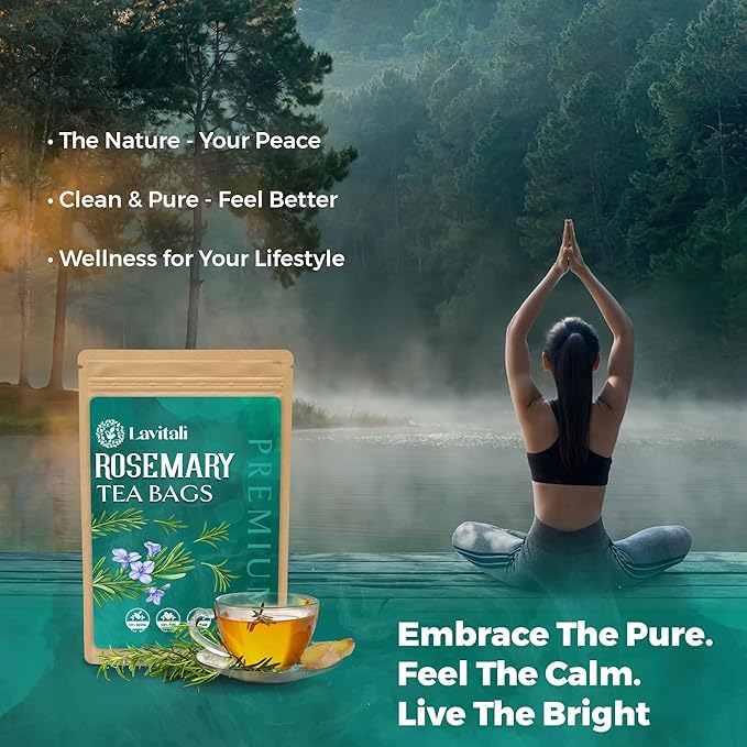 Lavitali, Rosemary Leaves Tea Bags | 60 bags, 100% Pure Herbal Tea | Caffeine-Free, No Sugar, Eco-Friendly Filter Bags | Daily Natural Botanical, Hot or Iced Herbal Infusion