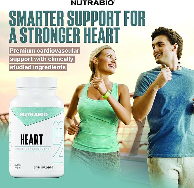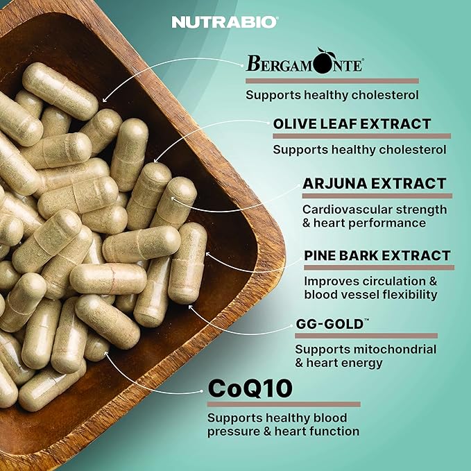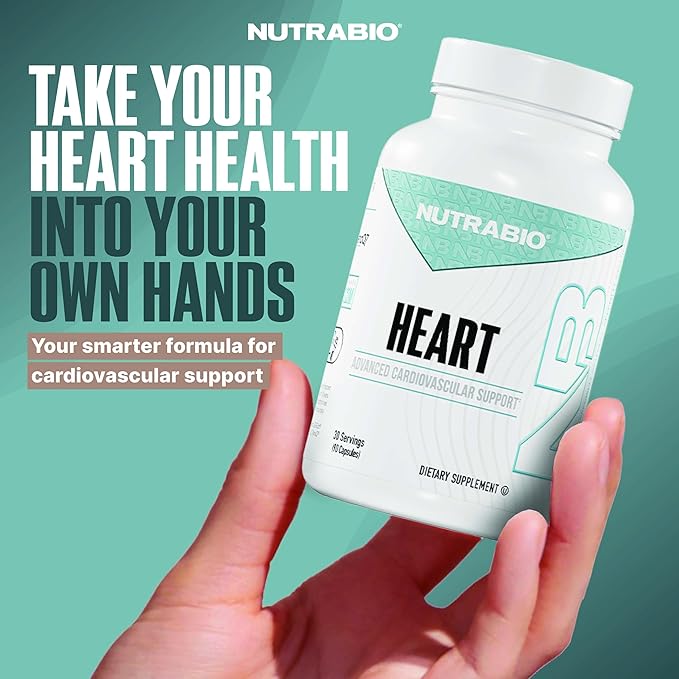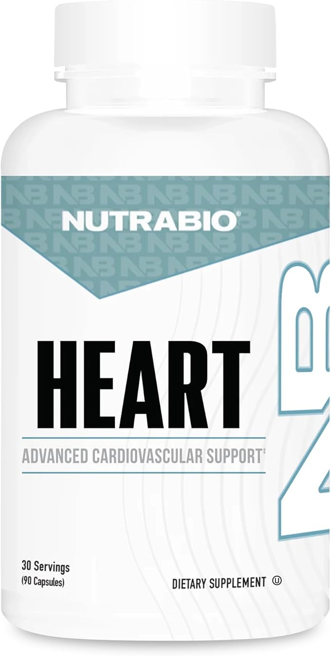 NutraBio Heart- Heart Health Supplements, Cardiovascular Supplement, Cholesterol, Circulatory & Healthy Blood Pressure Support- 90 Capsules