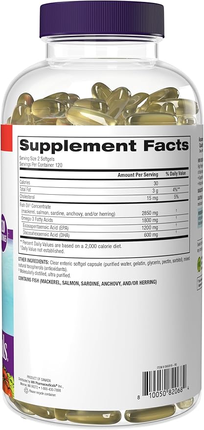 Webber Naturals Fish Oil 2850 mg, High Potency, 1800 mg Omega-3 per Serving, 240 Clear Enteric Softgels, No Fishy Aftertaste, Ultra-Purified, Supports Heart, Cognitive, and Joint Health