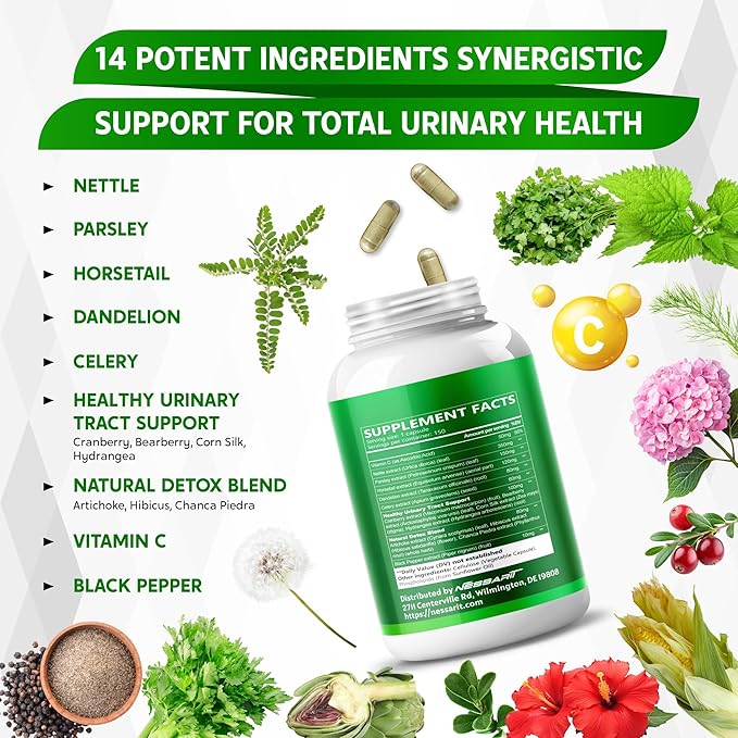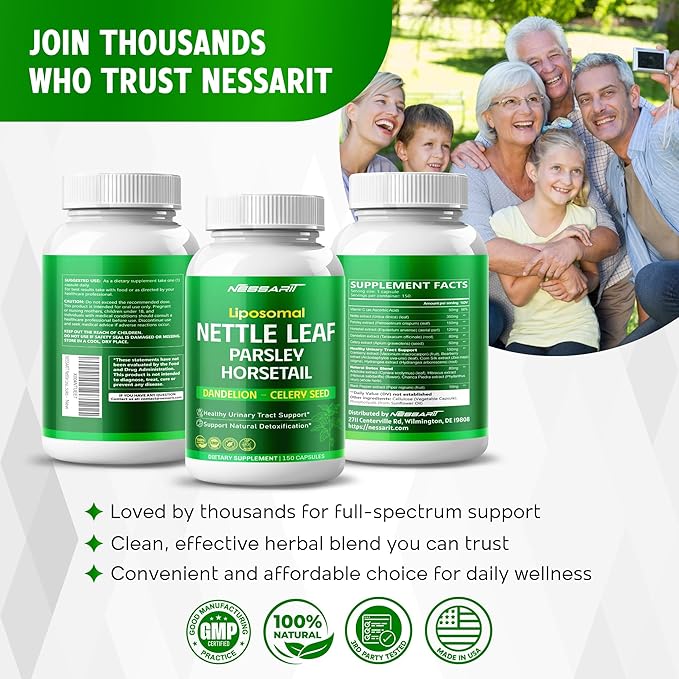 Nettle Leaf, Parsley, Horsetail, Dandelion & Celery Seed – Support Urinary Tract & Natural Detox – 150 Capsules – Made in USA