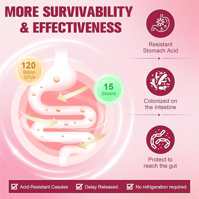- Convenience & Efficacy: Our probiotics are stored in a moisture-proof bottle to maintain their stability. The Delayed-Release Technology ensures they survive stomach acid and reach the intestines effectively. Refrigeration recommended but not required. No sugar, calories, or preservatives,soy-free & non-GMO, and manufactured in a GMP-compliant facility, our supplement ensures peak potency and purity.